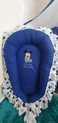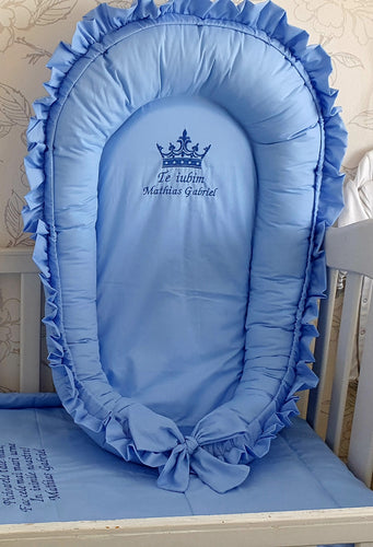 Baby nest , blanket and animals Pillows , personalised by embroidery, 100% cotton