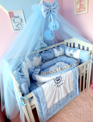 Luxury baby bedding 126x74, 100% cotton personalised by embroidery