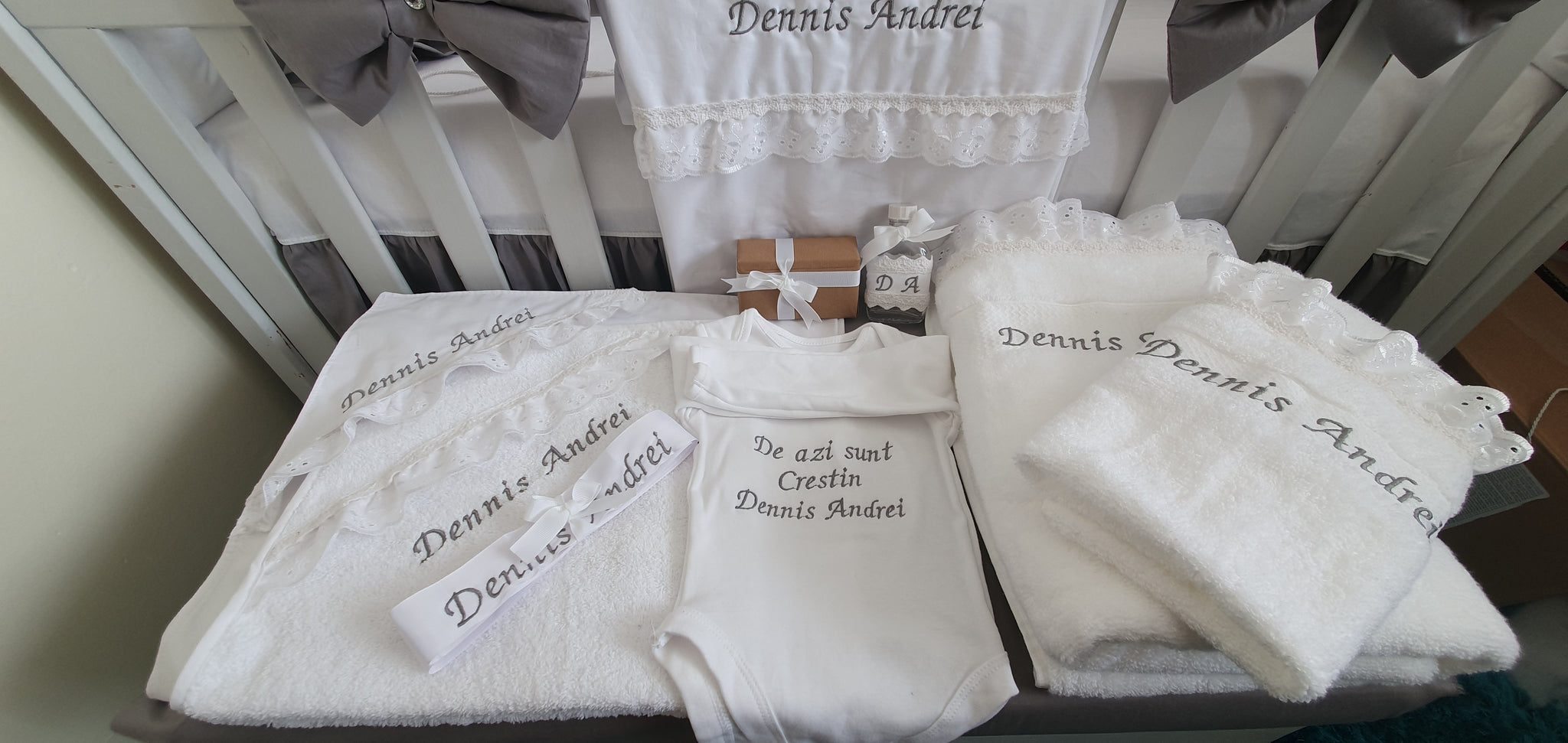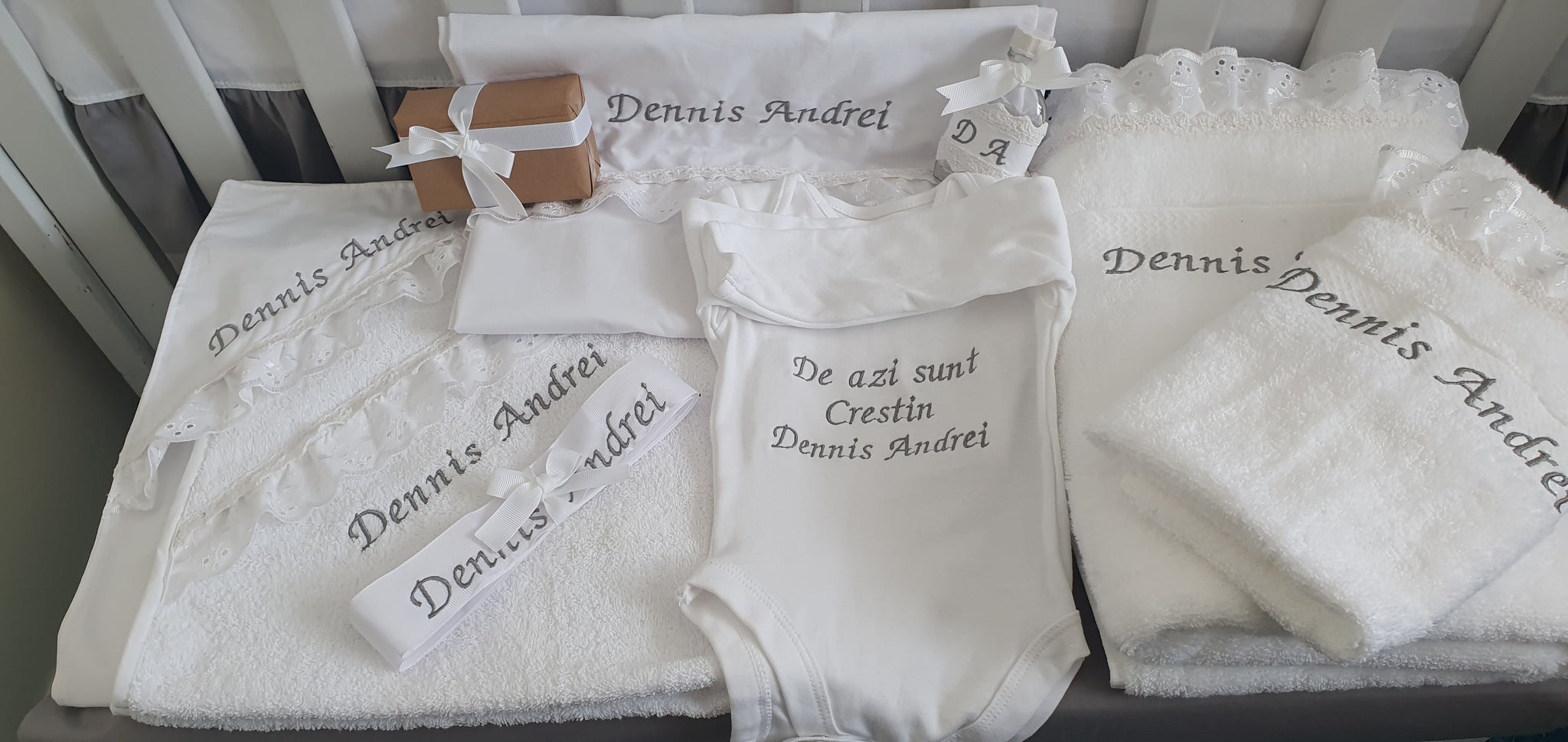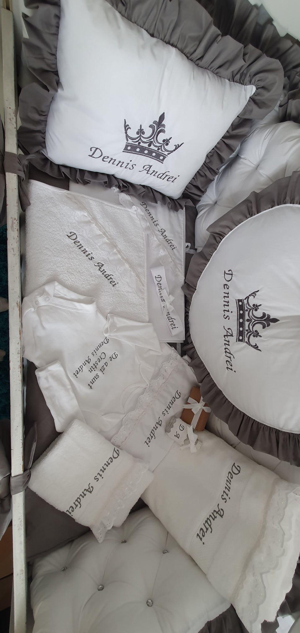 Set patut 120x60 personalizat prin broderie si trusou brodat si personalizat prin broderie