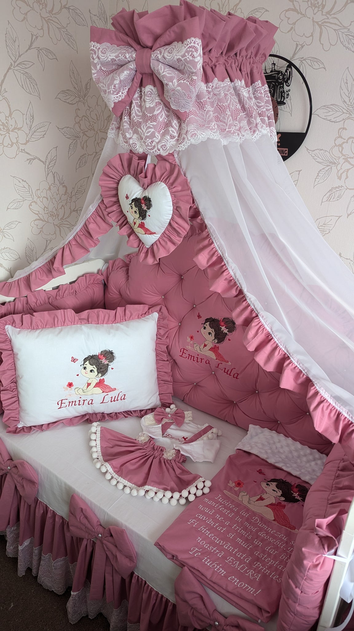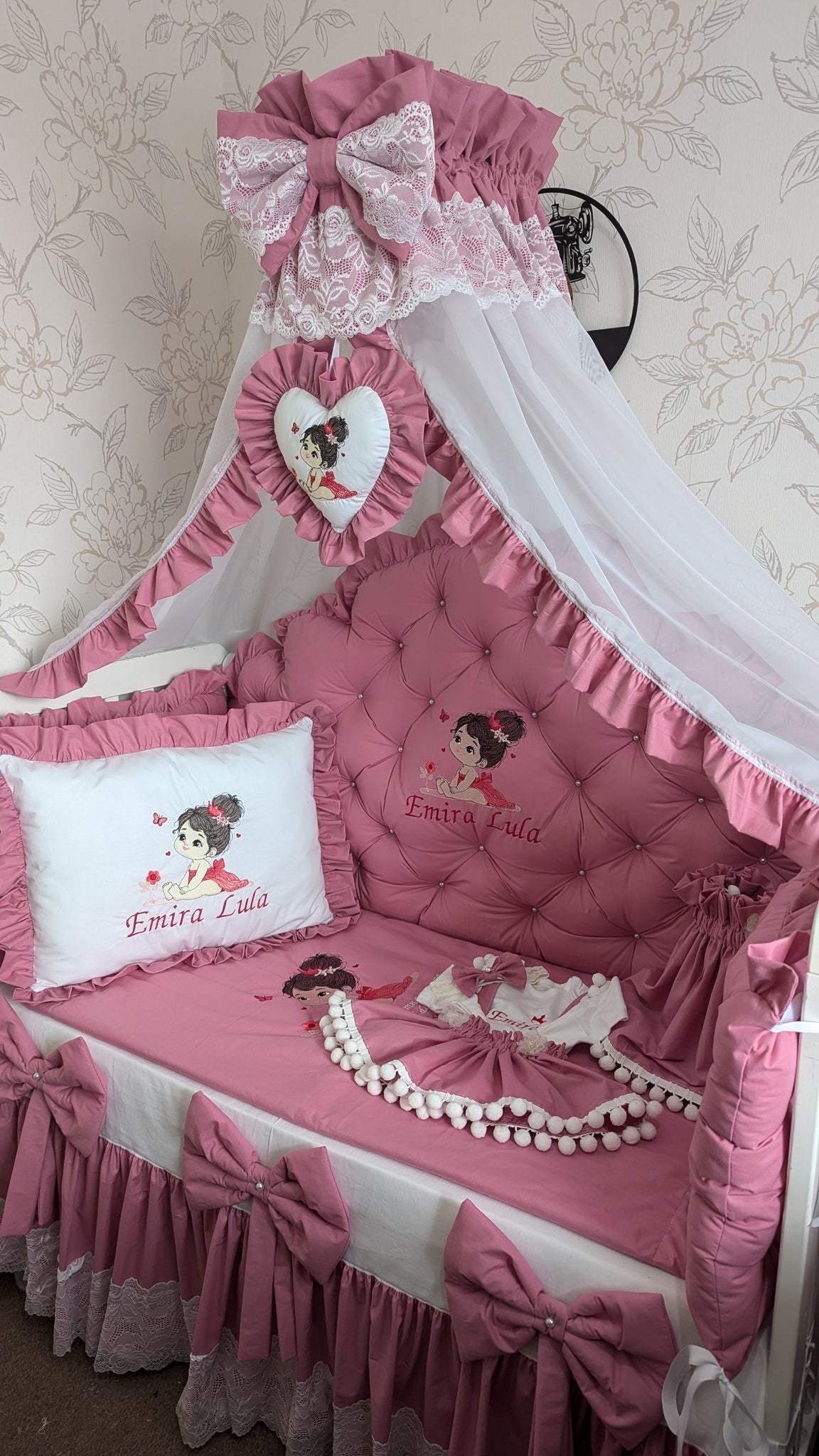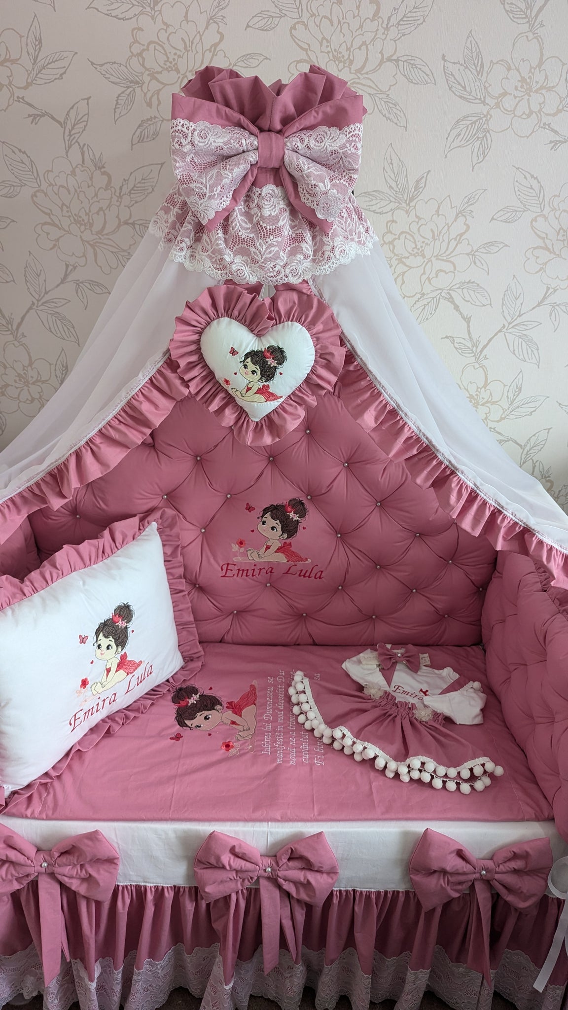 Luxury baby bedding 140*70 personalised by embroidery, 100% cotton