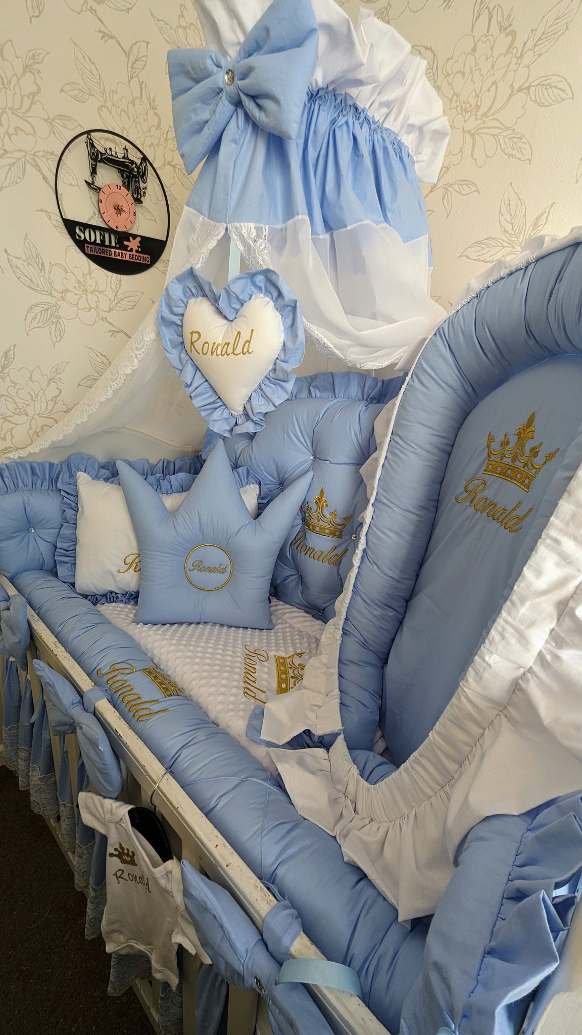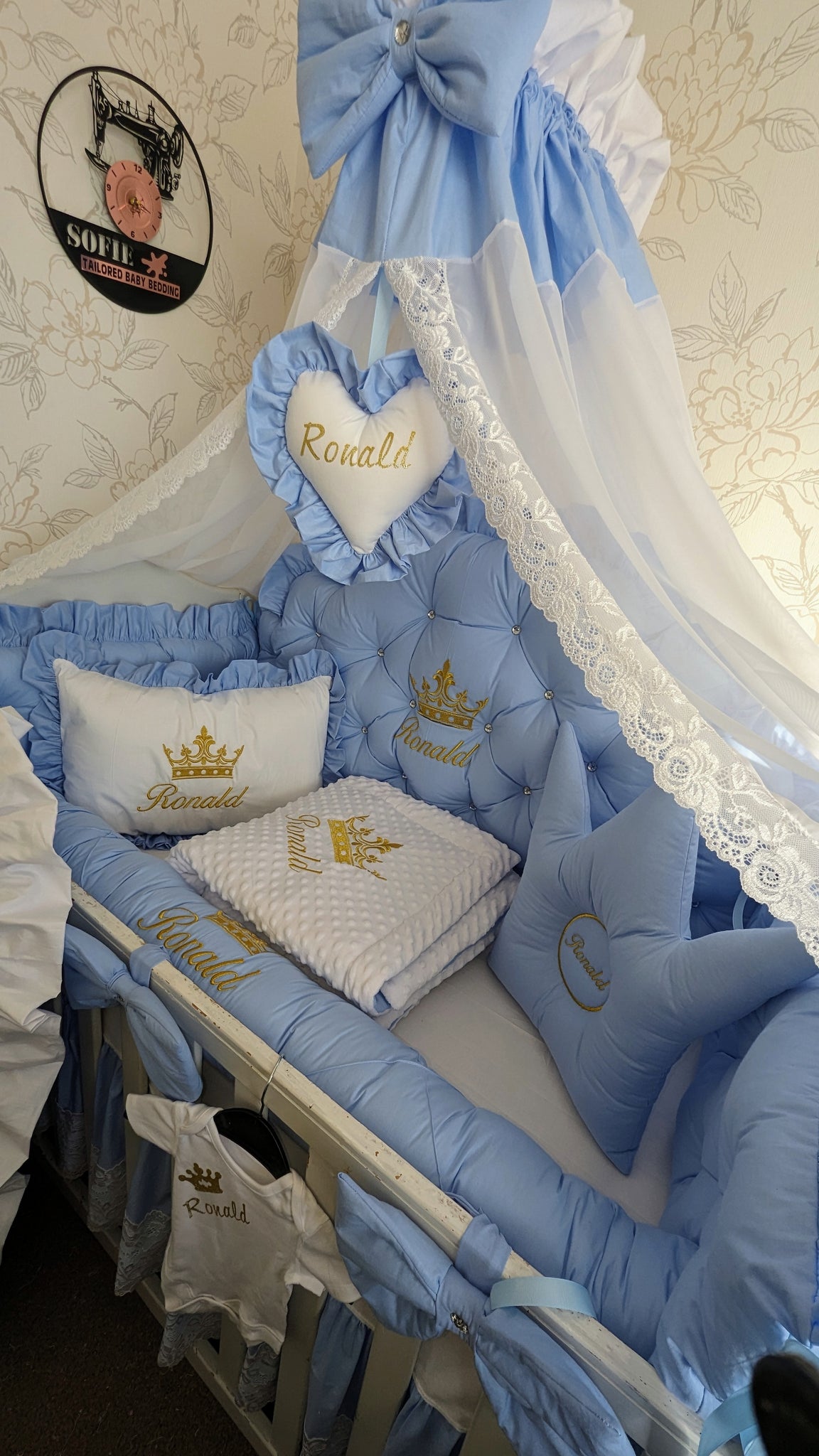 Luxury baby bedding cotton 140x70 personalised by embroidery