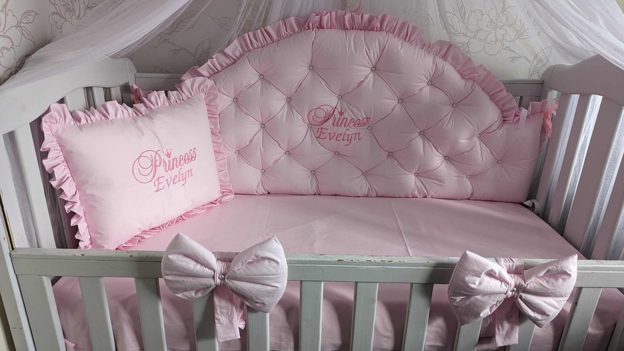 Luxury baby bedding cotton 140x70 personalised by embroidery