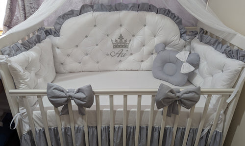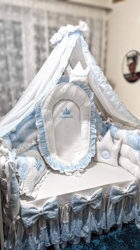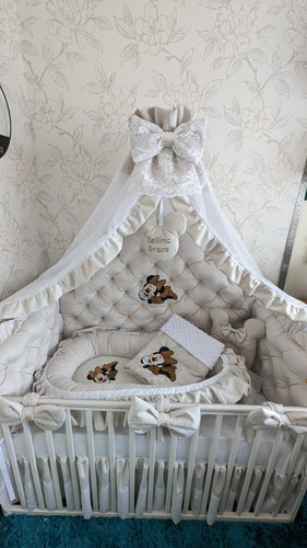 Luxury baby bedding cotton and lace 140x70 personalised by embroidery