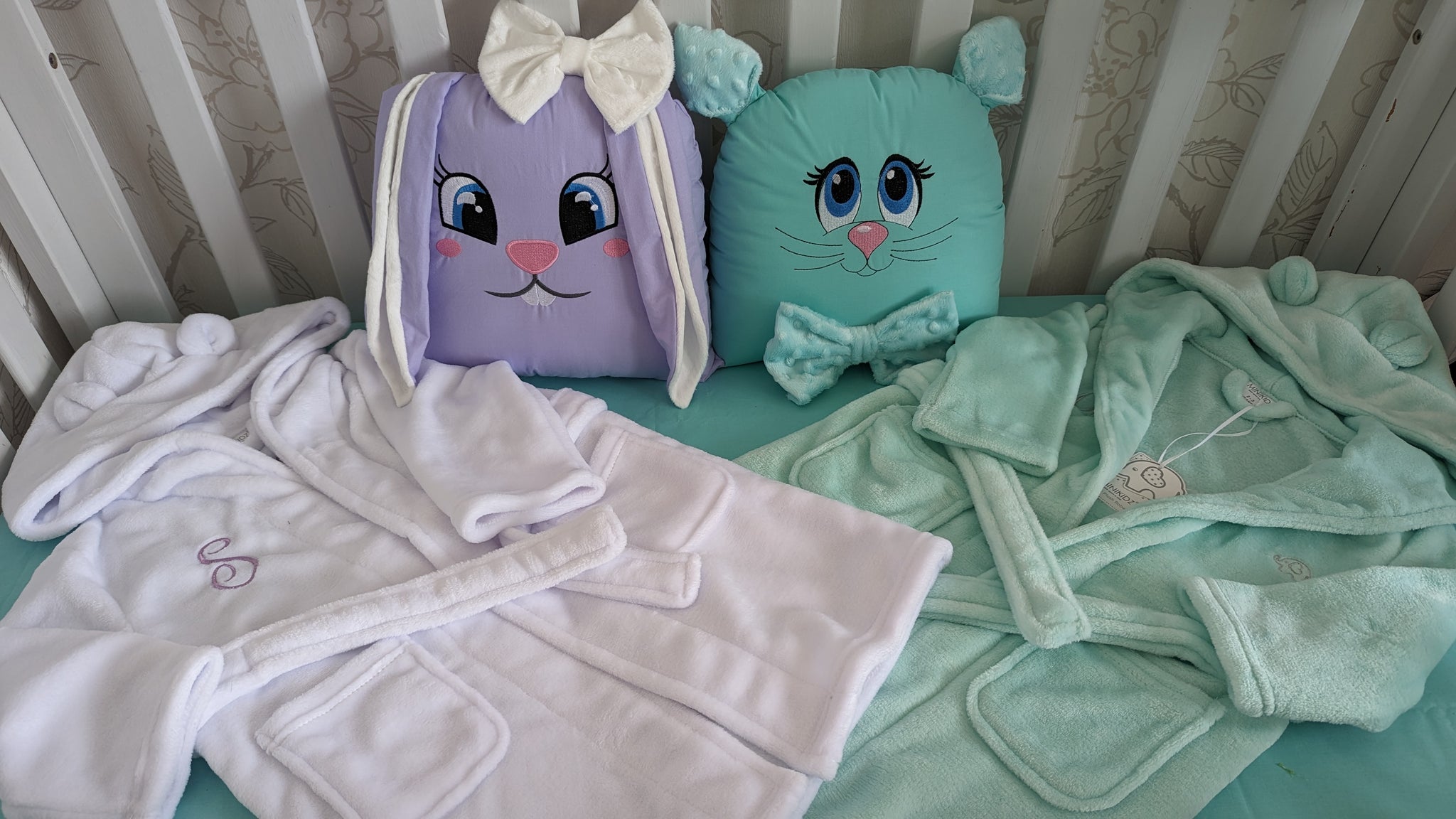Bathrobe for kids personalised by embroidery✅ 2 Pillows personalised by embroidery