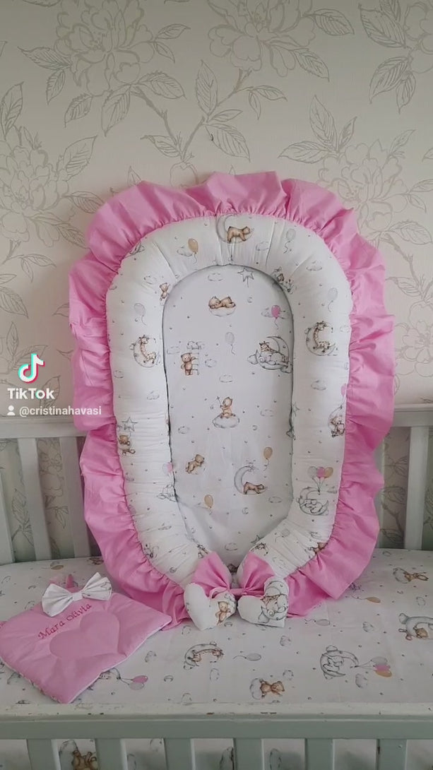 Baby nest personalised by embroidery and pillow 100% cotton