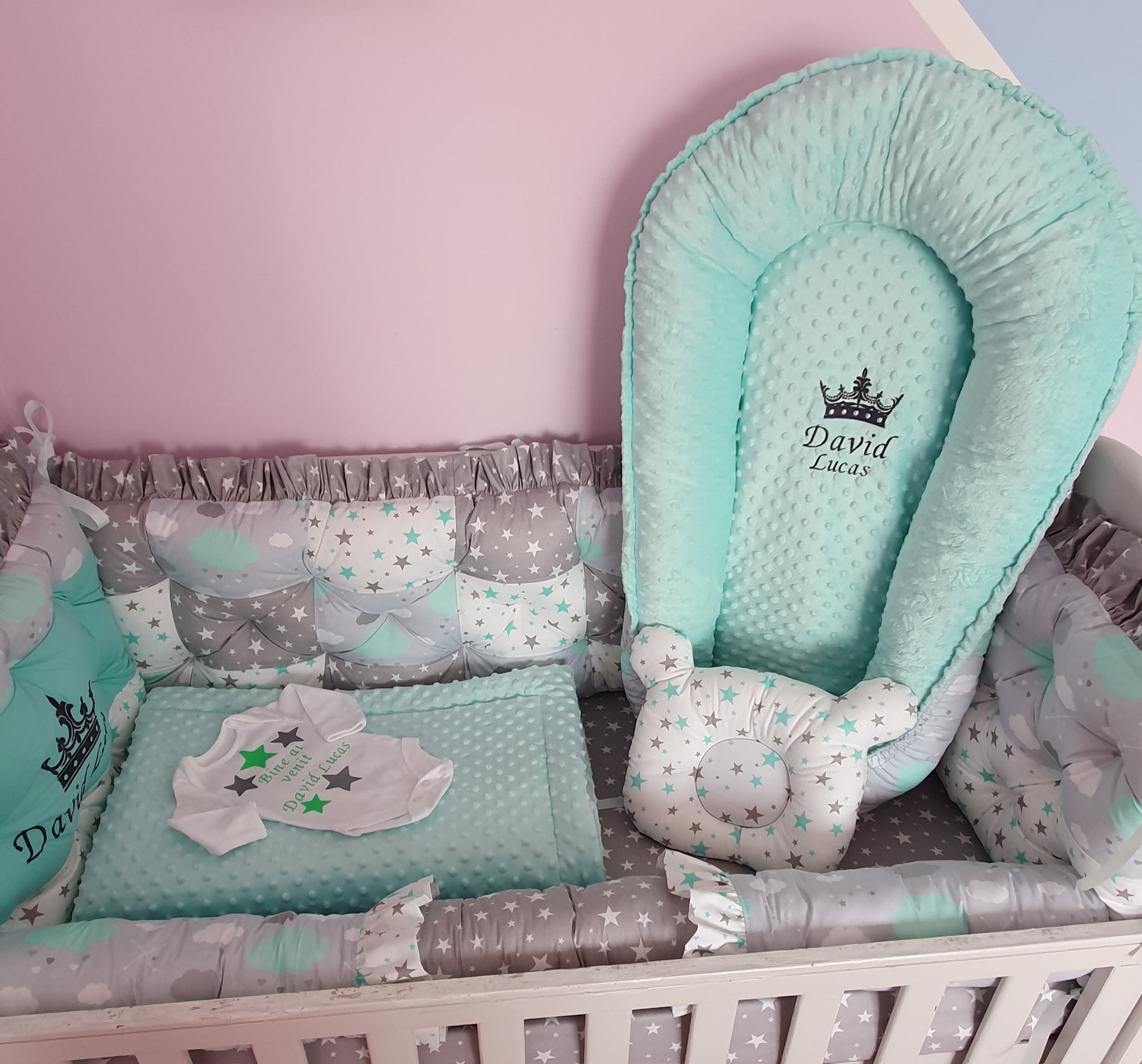 Luxury baby bedding 120x60 personalised by embroidery , 100 % cotton and dimple minky